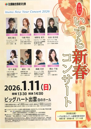 いずも新春コンサート実行委員会事務局(出雲市民会館内) TEL.0853-21-7580 (土・日・祝・月末月曜日をのぞく9:00~17:00)