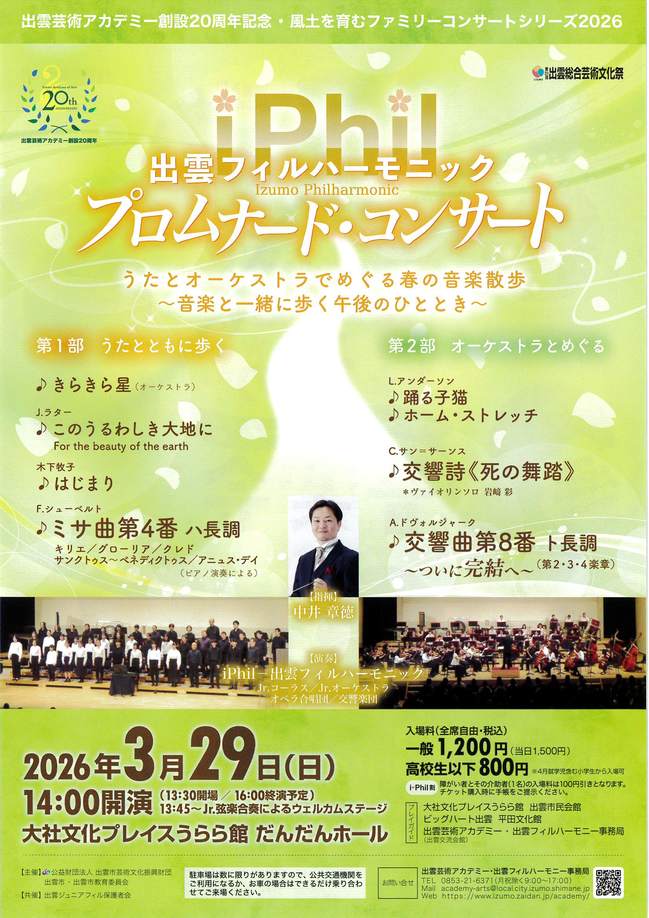 - 開場 13:30/ 開演 14:00 / 終演16:00(予定) ※13:45~Jr.弦楽合奏によるウェルカムステージ